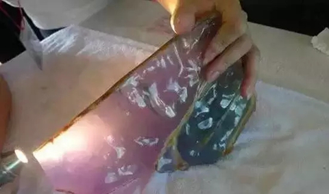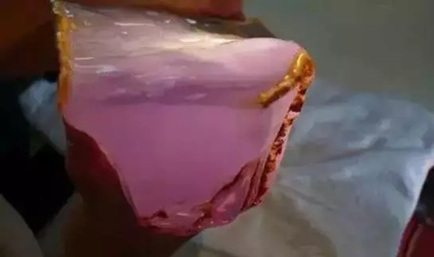 皮殼特征:斷口風(fēng)化薄皮,僅用肉眼即可看到其中有大片椿色存在,開口處可見肉質(zhì)細(xì)膩,水頭十足??沙?/span>滿椿高檔手鐲和掛件。