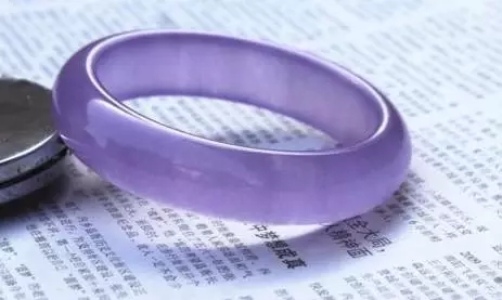 在自然光下,紫色濃郁,強(qiáng)光玉石電筒下,裂少,玉質(zhì)細(xì)膩,局部玉質(zhì)晶體不可見,呈隱晶狀且水足,可取手鐲掛件!