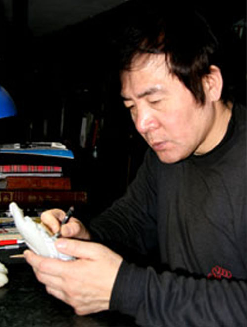 趙敏在上個世紀九十年代末“下了海”,擁有了天高任鳥飛的自由,而代價卻是失去了單位的庇護,每一塊原料都要自己去尋找.他也因此吃了些虧.“那時候經(jīng)驗不足,經(jīng)常會判斷失誤.比如一塊一百公斤的山料,外邊看著挺不錯,覺得利用率會有百分之八九十,但回來切料之后發(fā)現(xiàn),各種毛病去掉后,剩不了多少可用的部分.”趙敏坦言,選料是有一定賭性的,并且無論是山料還是籽料都難以幸免.“但好在新疆玉料跟翡翠相比,賭性并沒有那么大,邊做邊積累經(jīng)驗,吃虧的事就漸漸少了.”