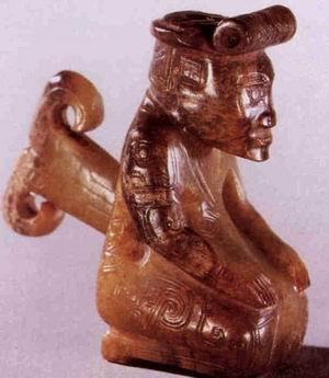 紅山文化距今有五六千年的歷史,因其最早發(fā)現于內蒙古自治區(qū)赤峰市郊的紅山后遺址而得名,后將在鄰近地區(qū)發(fā)現有與赤峰紅山遺址相似或相同的文化特征的諸遺址,統(tǒng)稱為紅山文化。已發(fā)現并確定屬于這個文化系統(tǒng)的遺址近千處,以西拉沐淪河、老哈河流域為中心,分布面積達20萬平方公里,在內蒙古自治區(qū)東南部、遼寧省西部、河北省北部地區(qū)均有發(fā)現,吉林省西北部也有少量發(fā)現。相對年代與仰韶文化大致相當,若根據放射性碳素斷代的數據,經校正後約為公元前3500年。 紅山文化的遺物多為石器和陶器,最知名的則是精美的玉器,尤其擅長圓弧造型玉雕表現,主要玉材是來自東北特產的‘岫巖玉’,即蛇紋石。
