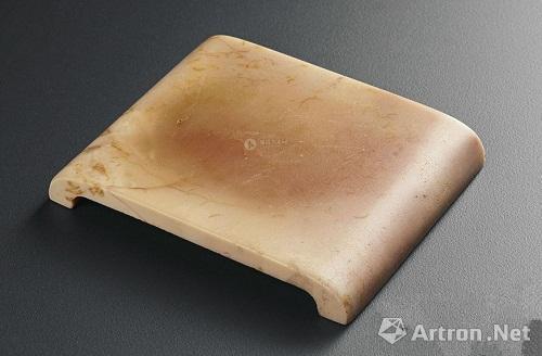 宋壽衣沁白玉墨床紫紅的沁色呈發(fā)散的圓形
