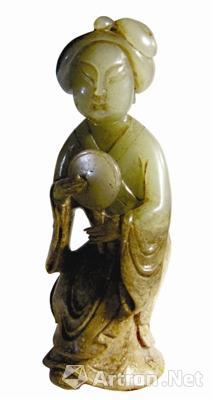 圖4 青玉雕持扇仕女