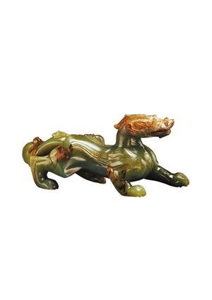 一個(gè)時(shí)代的作品無(wú)疑鐫刻著那個(gè)時(shí)代的審美觀、價(jià)值觀,這種比較統(tǒng)一的“風(fēng)格”就是斷代法的依據(jù)。比如戰(zhàn)國(guó)時(shí)期,傳統(tǒng)風(fēng)格興盛,從大方向上講,玉器多為平面,但樣式多變;從小方面看,以龍形玉珮為例,作品一般以單一視點(diǎn)取像為主,即龍都是側(cè)面。另外,龍身均呈蛇形,扭曲細(xì)長(zhǎng),龍身上的紋飾以規(guī)律的谷紋為主。到了漢代,審美觀和價(jià)值觀發(fā)生變遷,立體化成為這一時(shí)期最主要的風(fēng)格,這種突破前代的創(chuàng)新自然成為漢代玉器最顯著的標(biāo)志。細(xì)觀這些360度(即圓雕)雕琢的動(dòng)物、人物、器皿,大都由多視點(diǎn)組合,即在一個(gè)動(dòng)物或人物身上,進(jìn)行側(cè)面取像、正面取像和后面取像。尋博士以玉獅舉例,從正面看,除了頭部向前外,獅子的臀部也扭向前,這就是從后面看的后取像效果,而在真實(shí)生活中,獅子是不可能頭部臀部同時(shí)扭向前方的。漢代玉工采用多視點(diǎn)取像,就是為了增加玉雕的立體感。另外,漢代玉工還掌握了在平面玉雕上體現(xiàn)出立體感的技法,比如,他們會(huì)在器物表面做出弧面,或在平面器物上做浮雕,這都是突顯立體效果的辦法。