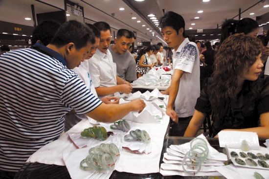 沉寂了兩年的翡翠原石市場(chǎng)在緬甸政府的“饑餓營銷”下再次瘋狂。之前落幕的第51屆緬甸翡翠公盤,毫無懸念地讓總體成交價(jià)格再次攀高。但與緬甸毛石公盤相對(duì)應(yīng)的,卻是國內(nèi)翡翠成品銷售市場(chǎng)的不景氣。