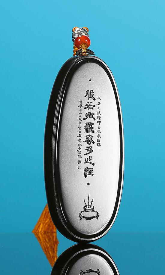 Lot436 龐然 和田青玉籽料般若波羅蜜多心經(jīng)牌 成交價178250元