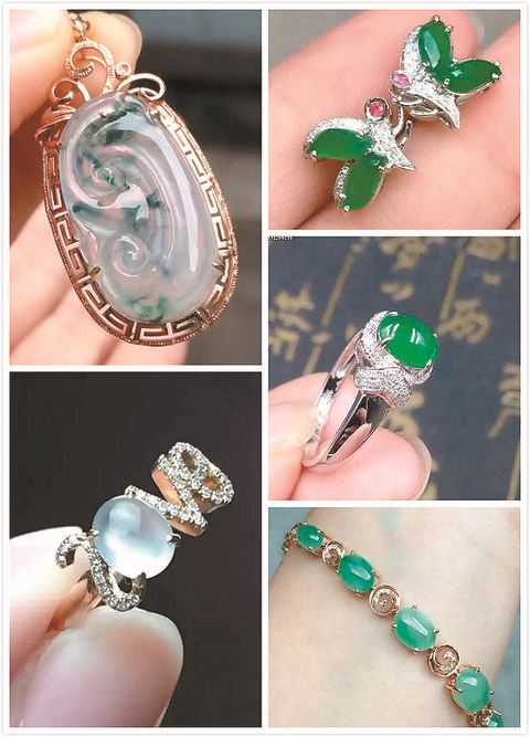有著“金玉良緣” 好意頭的翡翠鑲嵌飾品受到結婚新人的喜愛。陳燕玲 攝