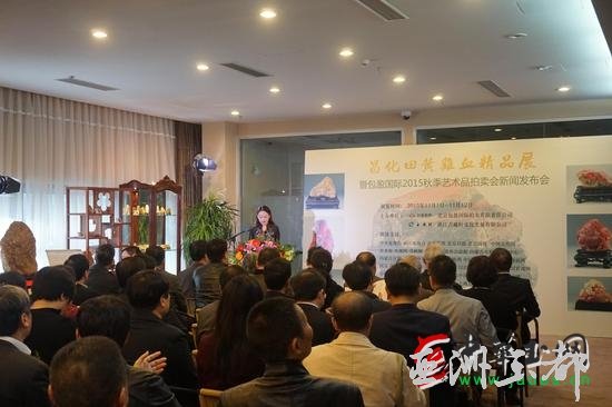 由北京包盈國(guó)際拍賣(mài)責(zé)任有限公司與浙江古越軒文化發(fā)展有限公司共同舉辦的“昌化田黃雞血精品展”在包商銀行二樓展示廳舉行,一百余件昌化田黃雞血精品雕件驚艷亮相,來(lái)自全國(guó)各地企業(yè)界、收藏界和文化界的百余位嘉賓云集銳創(chuàng)大廈,共同見(jiàn)證展覽的開(kāi)展,并為11月15日舉行的“包盈國(guó)際2015秋季藝術(shù)品拍賣(mài)會(huì)”預(yù)熱。
