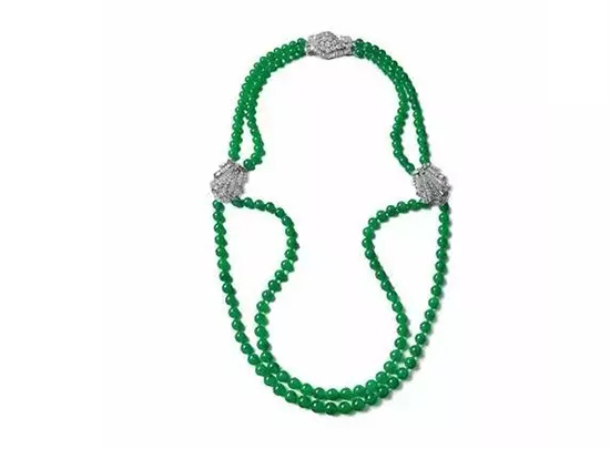 鉑金鑲嵌天然翡翠珠項(xiàng)鏈