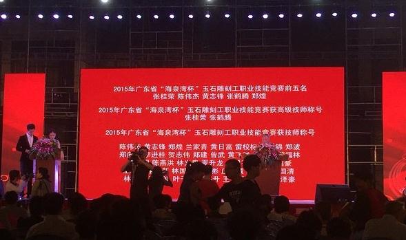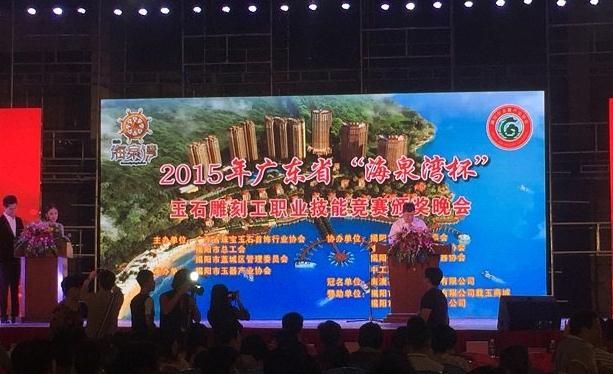在文藝演出開始前,晚會(huì)還舉辦了2015年中國職業(yè)技能大賽廣東省玉石雕刻工“海泉灣杯”職業(yè)技能競(jìng)賽總決賽頒獎(jiǎng)儀式。競(jìng)賽由廣東省珠寶玉石首飾行業(yè)協(xié)會(huì)、揭陽市總工會(huì)和揭陽市藍(lán)城區(qū)管理委員會(huì)主辦,揭陽市玉器產(chǎn)業(yè)協(xié)會(huì)承辦,旨在傳承和發(fā)揚(yáng)傳統(tǒng)玉文化,發(fā)掘和培育玉雕人才,打造業(yè)內(nèi)交流合作平臺(tái)。