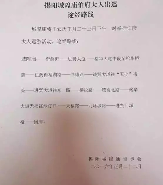 揭陽盛事:城隍廟伯府大人出巡途徑路線發(fā)布