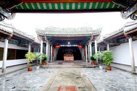 勉勛公祠沐風(fēng)櫛雨百多年,具有較高的建筑藝術(shù)價(jià)值。林慈雄等老人如數(shù)家珍地向記者介紹祠堂內(nèi)的每一處建筑細(xì)節(jié)。公祠屋脊飾有龍鳳等圖案的灰塑彩繪。整座均用綠色琉璃瓦嵌邊,紅桁綠角。門(mén)樓肚正面由12幅雙面雕屏疊砌而成,側(cè)面墻兩邊各有3幅單面石雕屏,刻有古代戲劇故事、祥禽瑞獸、花鳥(niǎo)蟲(chóng)魚(yú)等圖案。