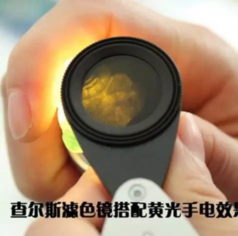 另外,在人工染色處理的寶石和人工合成寶石的檢測方面也相對比較實用,如染色翡翠和藍玻璃在濾色鏡下顯紅色,但是,有些寶石在濾色鏡下顏色也不太明顯,如染色石英巖在濾色鏡下顏色變化就不明顯,因此,查爾斯濾色鏡的鑒定結(jié)果一般只具參考性作用。